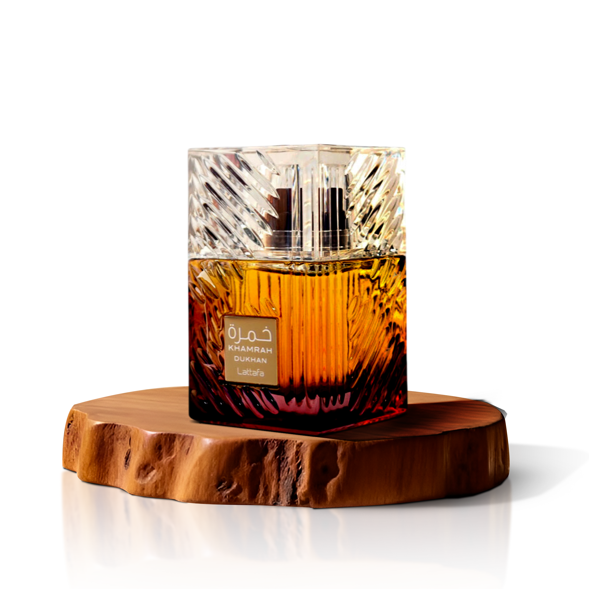 Khamrah Dukhan Eau de Parfum by Lattafa is an intoxicating unisex fragrance that embodies warmth and depth with a smoky allure. This scent opens with a burst of mandarin and spiced pimento, unfolding into a heart of incense and patchouli, and settling into a rich base of tobacco, amber, and tonka bean for an irresistibly sensual finish.