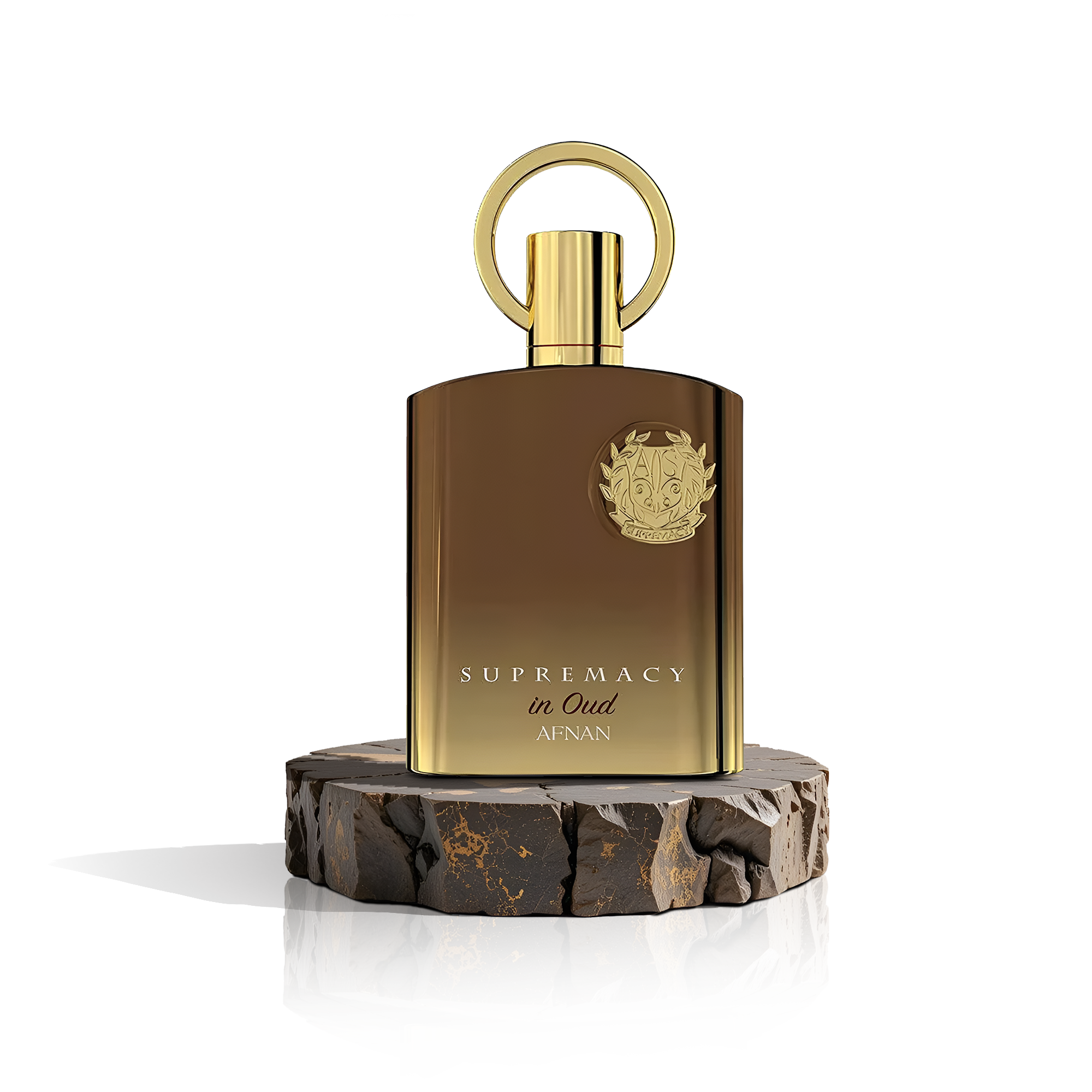 Supremacy in Oud Eau de Parfum by Afnan is a luxurious and powerful fragrance that exudes confidence and depth. It opens with a rich blend of saffron, nutmeg, and lavender, leading to a heart of smoky oud and sweet nuances, and concludes with a warm, earthy base of patchouli and musk for a lasting, sophisticated finish.